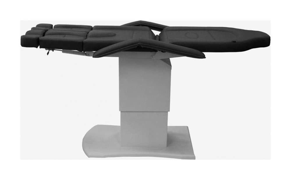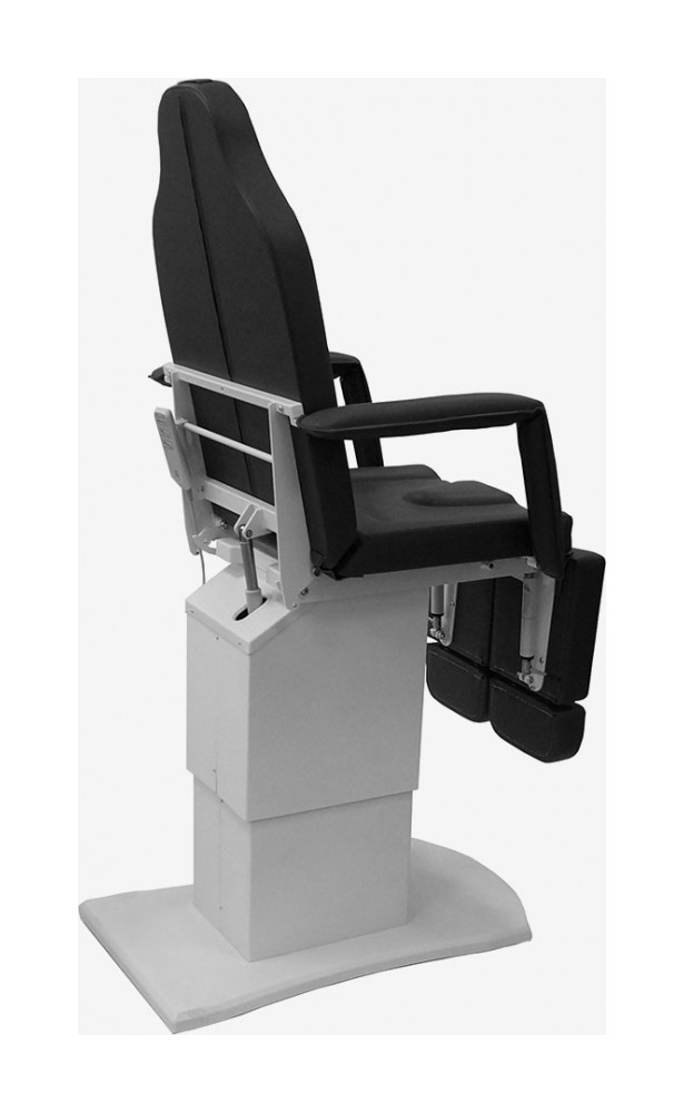 Педикюрное кресло оснащено тремя электромоторами, обеспечивающими регулировку высоты, угла наклона спинки и угла наклона сиденья. Опоры для ног фиксируются при помощи газ-лифтов. Кресло легко раскладывается в горизонтальное положение, образуя ровную поверхность. Надежная конструкция системы подъема обеспечивает высокую устойчивость кресла даже при максимальной высоте. Управляется при помощи ручного проводного пульта. Дополнительно при производстве могут быть установлены различные опции.