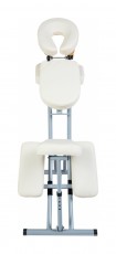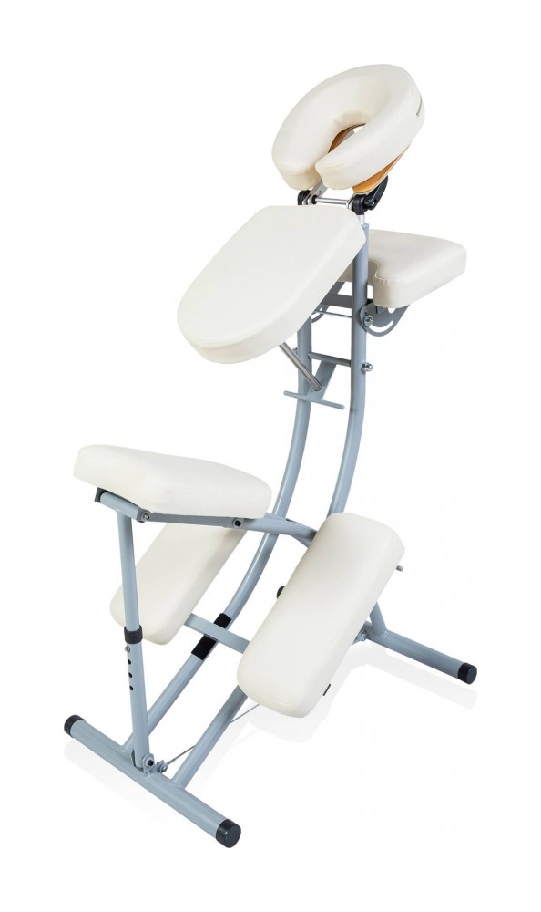 Массажное кресло для шейно-воротниковой зоны Каркас изделия выполнен из алюминия, поэтому обладает высокой прочностью и устойчивостью к нагрузкам, но легкий вес стула облегчает его установку и перемещение. Компактные габариты не занимают много места, а стильный дизайн массажной мебели – украшает интерьер.  Массажный стул имеет удобные регулировки, позволяющие настроить конструкцию под физические особенности каждого пользователя. Имеются подушки для упора груди и полочки для рук – все эти элементы настраиваются, позволяя достичь максимальный комфорт.
