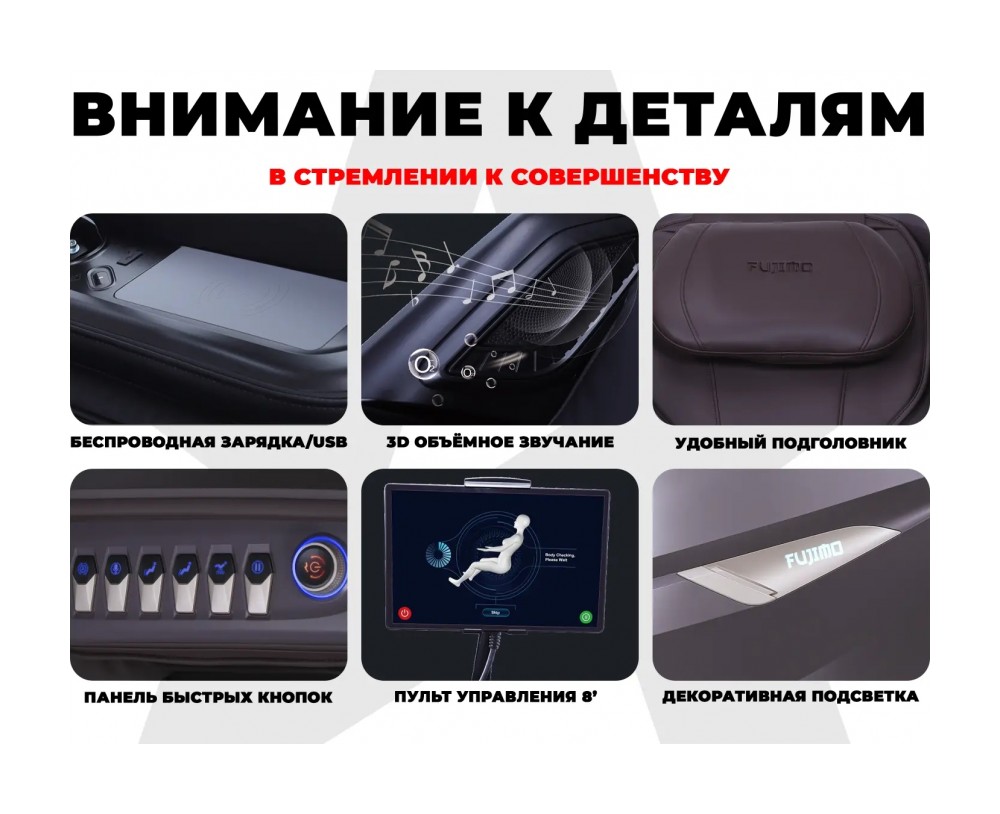 • Бинарная технология 8D DUAL CORE массажа реализована с помощью 2-х соматосенсорных 4D механизмов