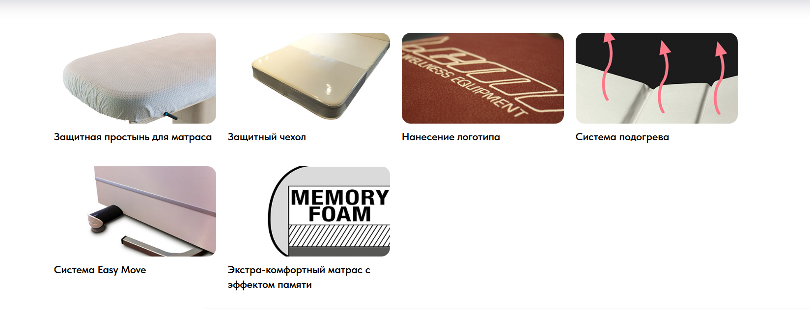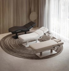 • Ключевая особенность — ультракомфортный матрас с эффектом памяти, оснащенный регулируемыми подлокотниками и подголовником с отверстием для лица. Эргономичная конструкция способствует полному расслаблению мышц спины и шеи, повышая эффективность массажных процедур.