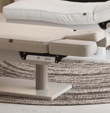 • Для удобства специалиста предусмотрено управление с помощью ножного пульта. Основание выполнено в виде двух колонн из изогнутого дерева со стальными элементами, что придает кушетке изысканный и современный вид.