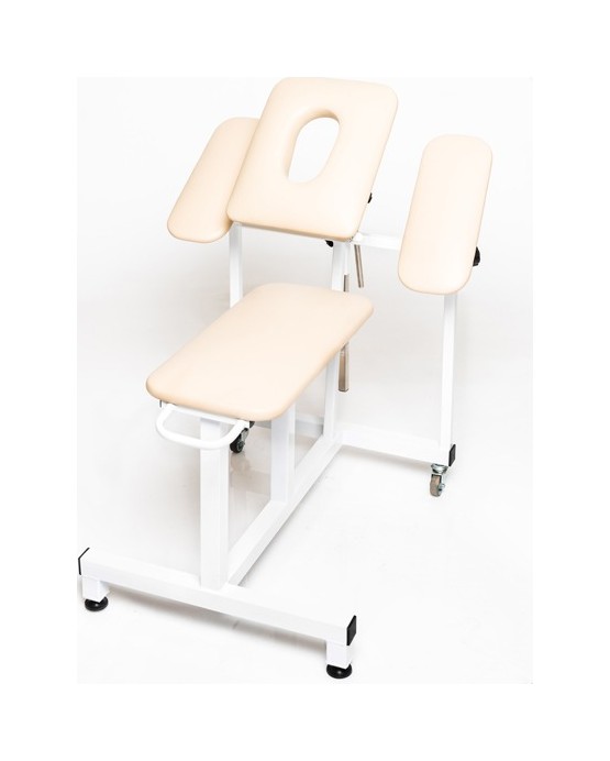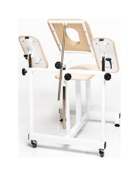 Скамья поставляется в собранном виде. Каркас сделан из стальной профильной трубы с порошковым полимерным покрытием, устойчивым к ударам, сколам и обработке дезинфицирующими растворами. Опоры – регулируемые. Мягкие элементы выполнены из фанеры, поролона, покрыты искусственной кожей SKADEN (Польша) устойчивой к истиранию, химическим дезинфектантам и УФ-излучению. Технология обтяжки - без швов, облегчающая процесс чистки и санобработки. Цвет обивки – по желанию заказчика. Регулировки: Высота головной секции и упоров для рук – механическая, бесступенчатая, фиксация – винт Барашек. Головная секция – по углу наклона от 10°до 90° - механическая, бесступенчатая, фиксация – винт Барашек. Упоры для рук - по углу наклона 340º - механическая, бесступенчатая, фиксация – ручка-фиксатор. Скамья оснащена колесами с шинами из литой резины для легкого перемещения.