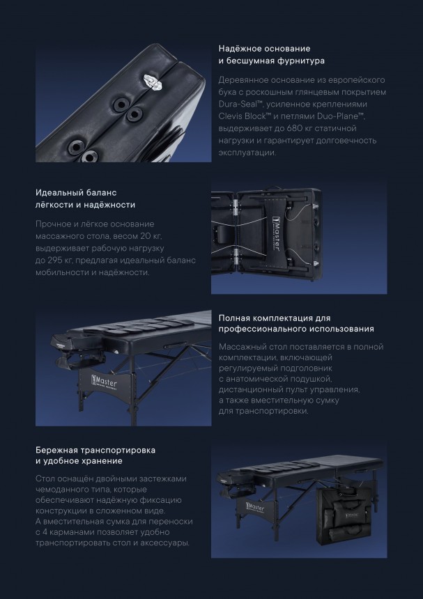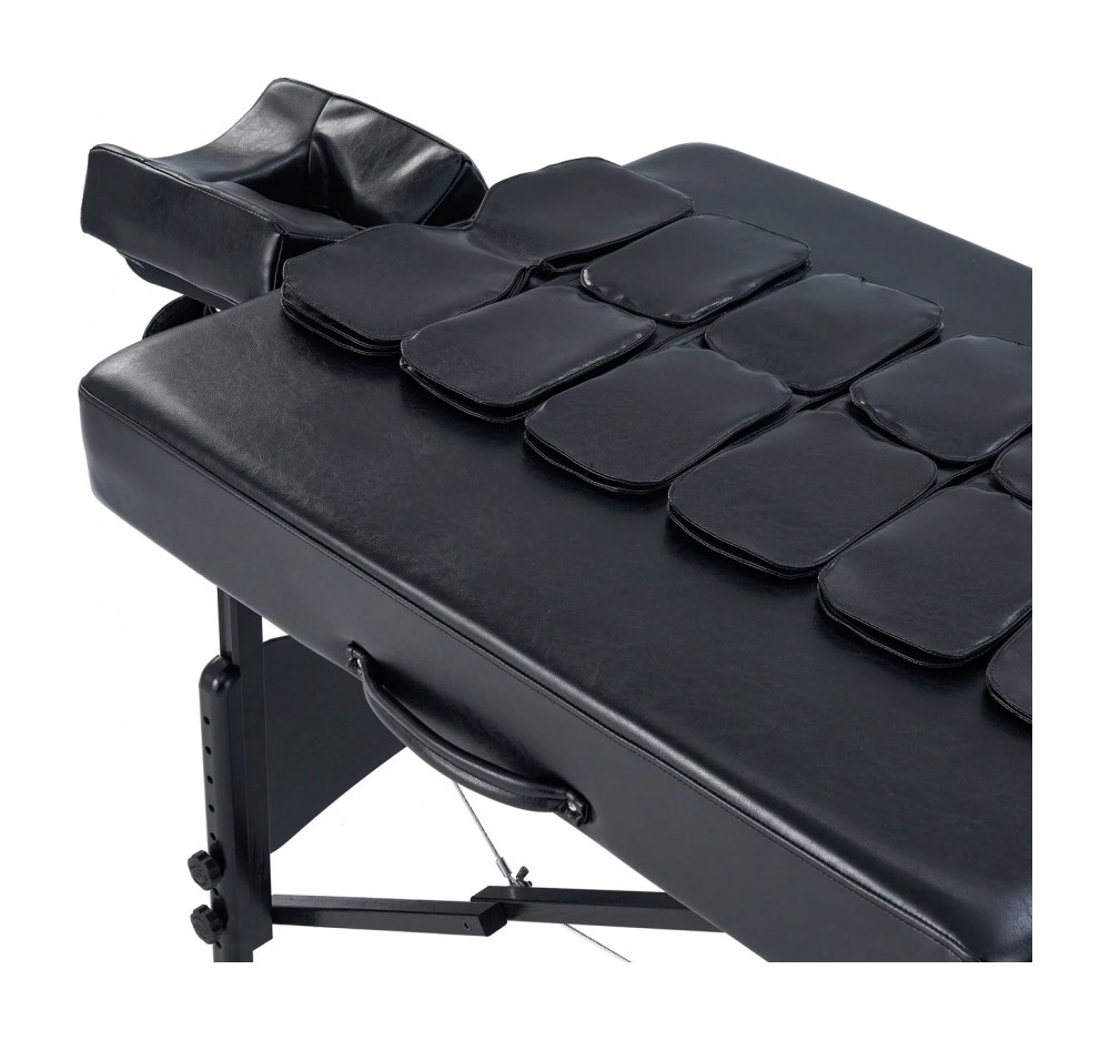 Предусмотрены варианты расположения тела: для мужчин и женщин в положении лёжа на животе, а также универсальный вариант лёжа на спине — учитывает анатомические особенности. Работает и как обычный массажный стол При выключенной функции компрессии поверхность остаётся ровной и комфортной — идеально подходит для любого вида массажа.