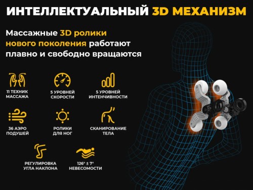 Функция сканирования позволяет точно подстроиться под индивидуальность строения тела каждого пользователя. Определить нахождение шеи, плеч, поясницы и даже зажатых и напряженных участков.